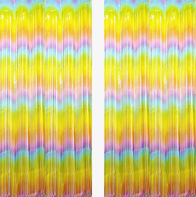 • PACKAGE INCLUDES: 2PCs OF PASTLE RAINBOW FOIL CURTAIN